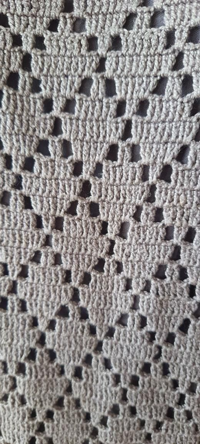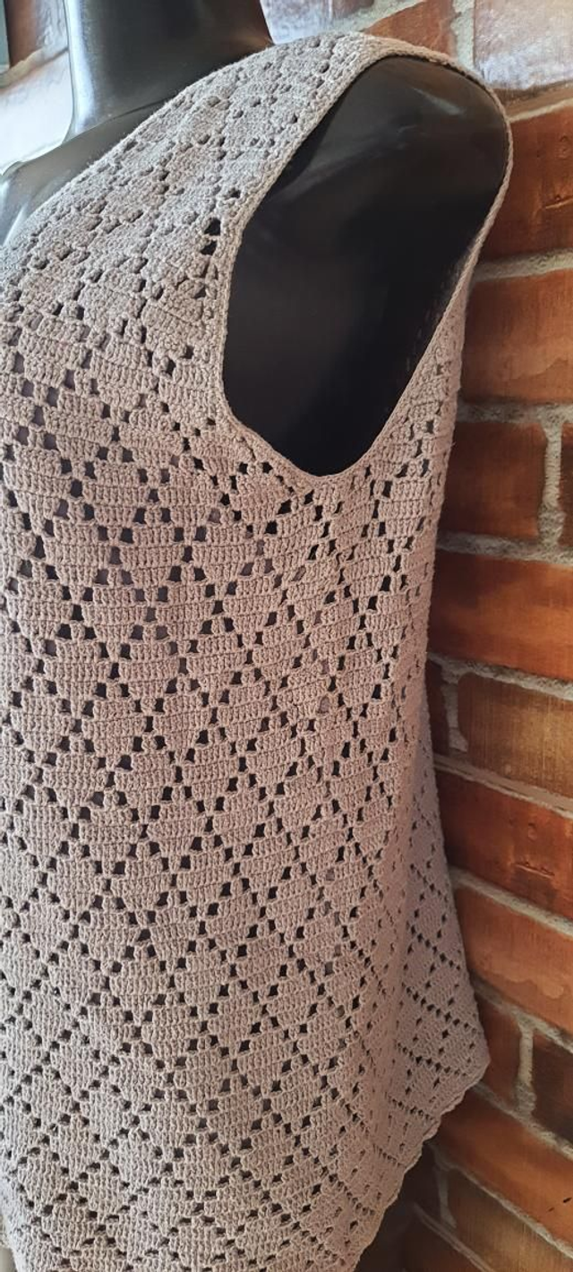 Blusa de croche marrom claro, sem manga, T/G. OBS: usado super conservado