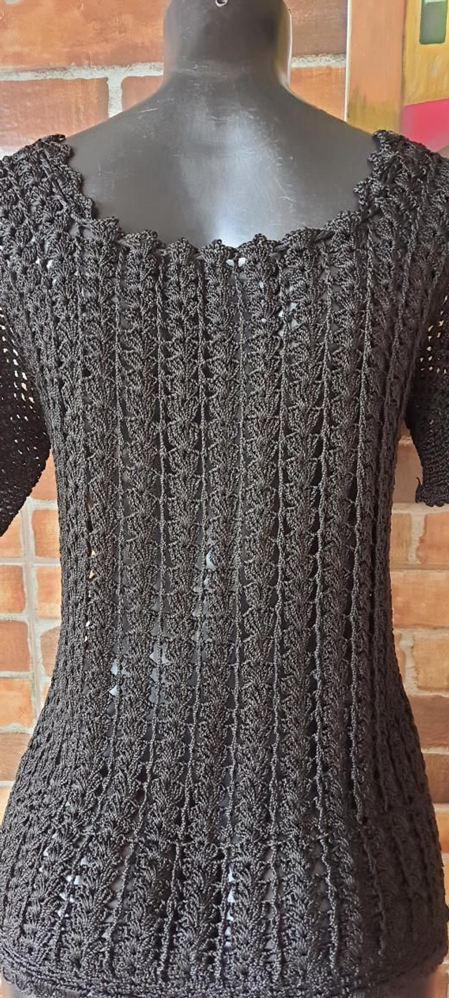 Blusa de croche preta, T/40. manga curta. Obs: usado super conservado
