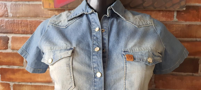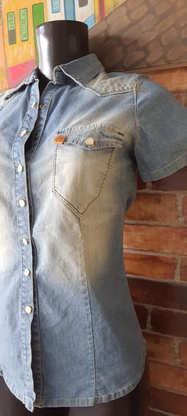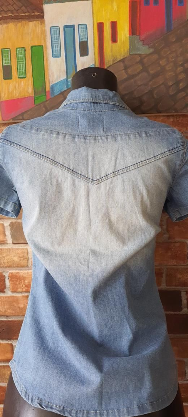 Blusa jeans T/P, manga curta, OBS: peça NOVA