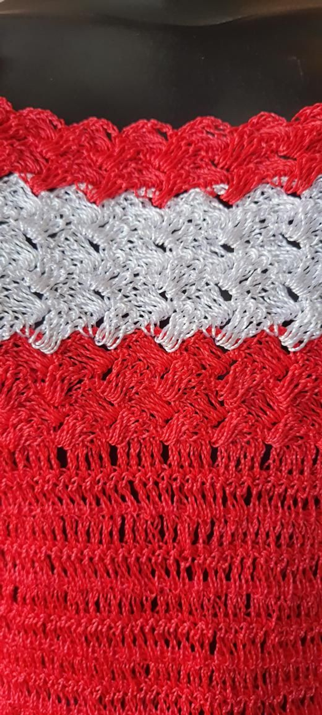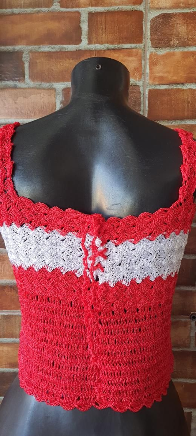 Blusinha de croche vermelho com branco, T/38. Com alça. OBS: usada super conservada