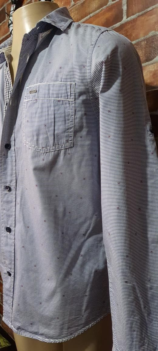 Camisa Social Masc. Estampada, manga longa. T/P. OBS: usado super conservado