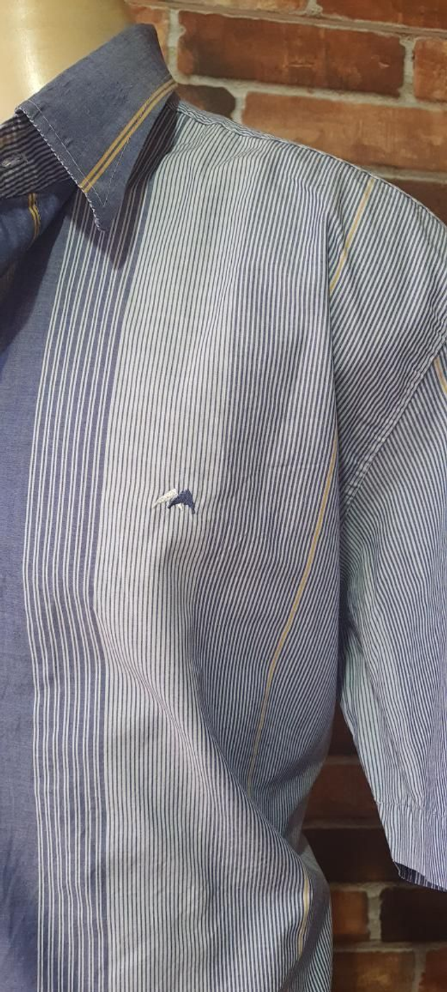 Camisa Social Masc listrado T/07. manga curta, OBS: usado super conservado