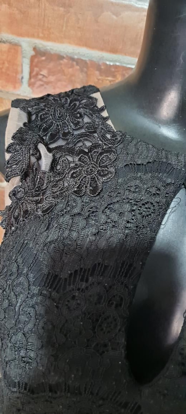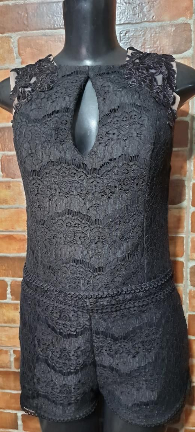 Macaquinho curto preto de renda. T/M. Sem manga. OBS: usado super conservado