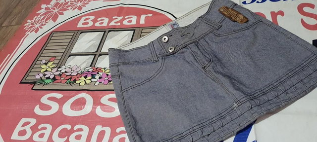 Saia Jeans Curta, T/42. 2 bolsos. OBS: peça NOVA