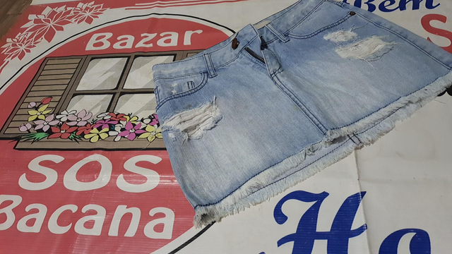 Saias Jeans Curta, T/36. OBS: usada super conservada