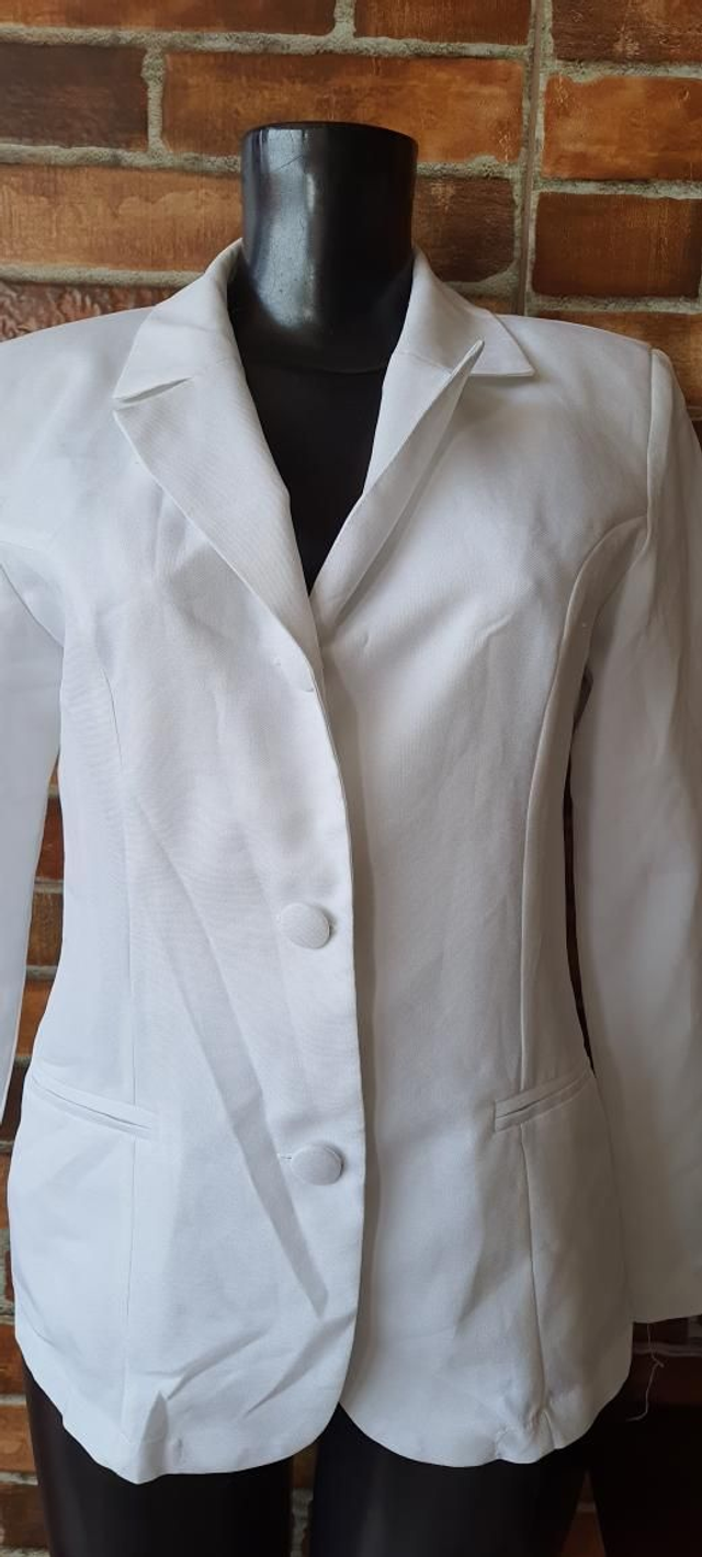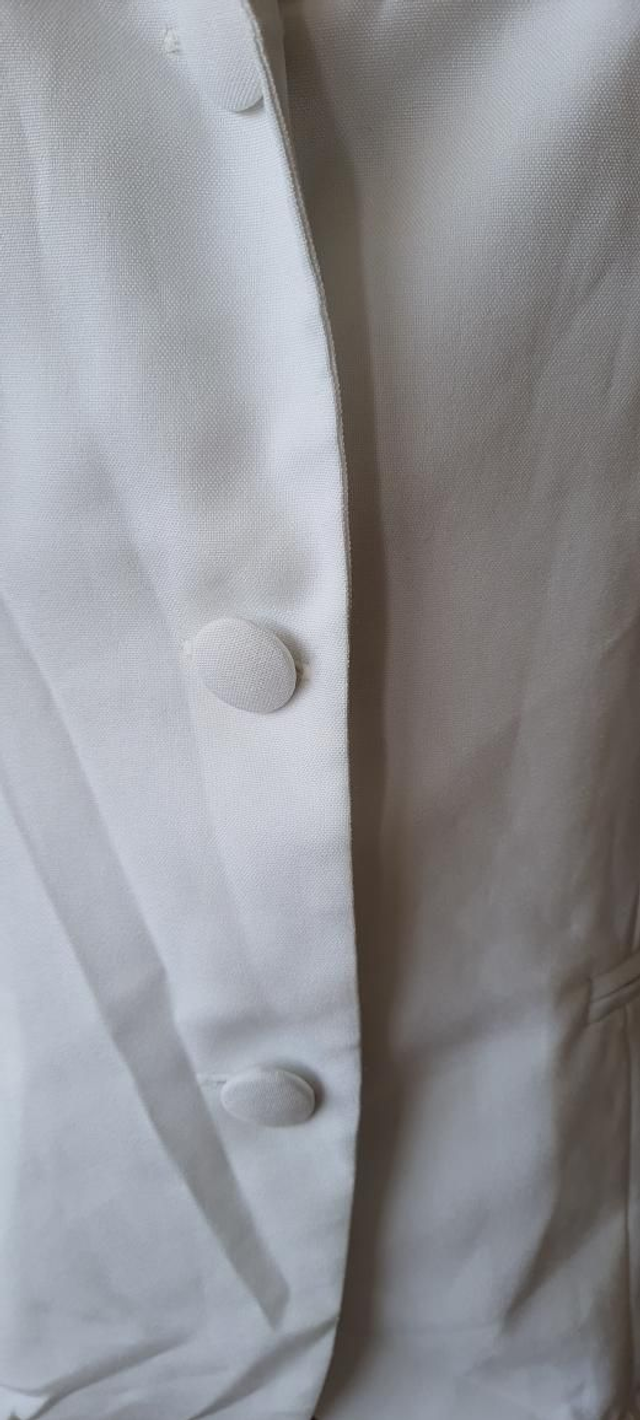 Terninho Branco Fem. T/P manga longa. Tem 3 botões cobertos. OBS: usada super conservada