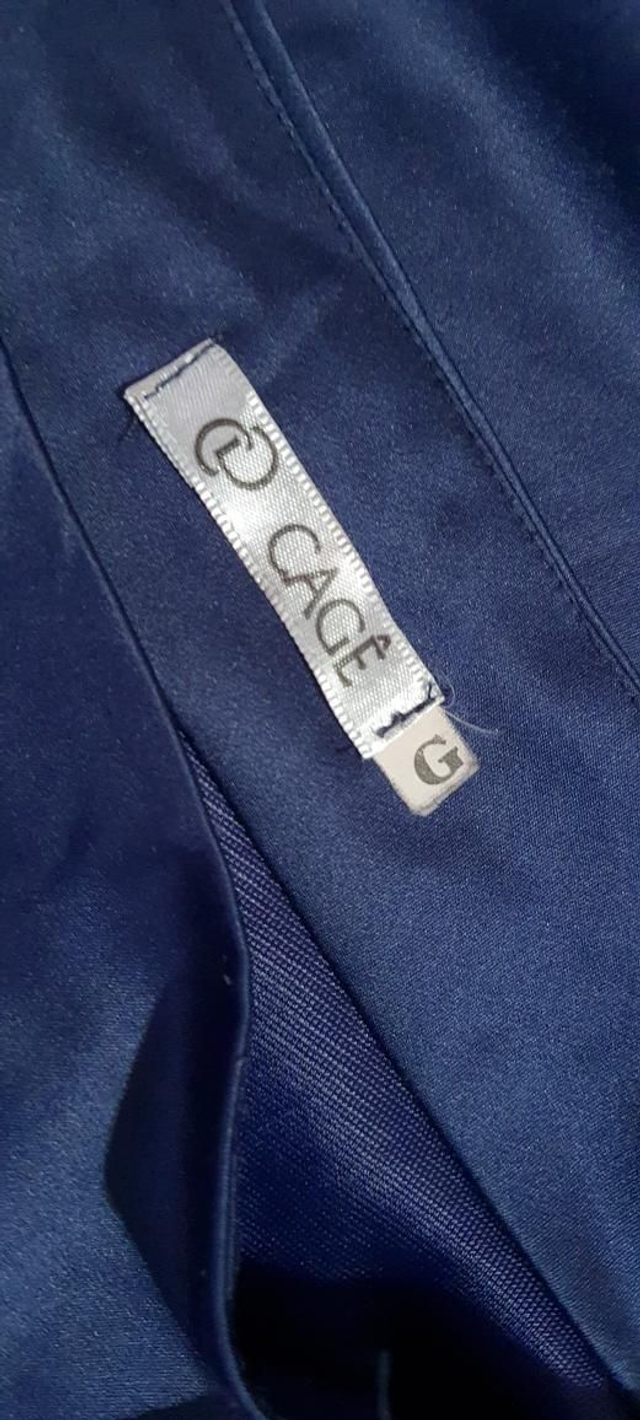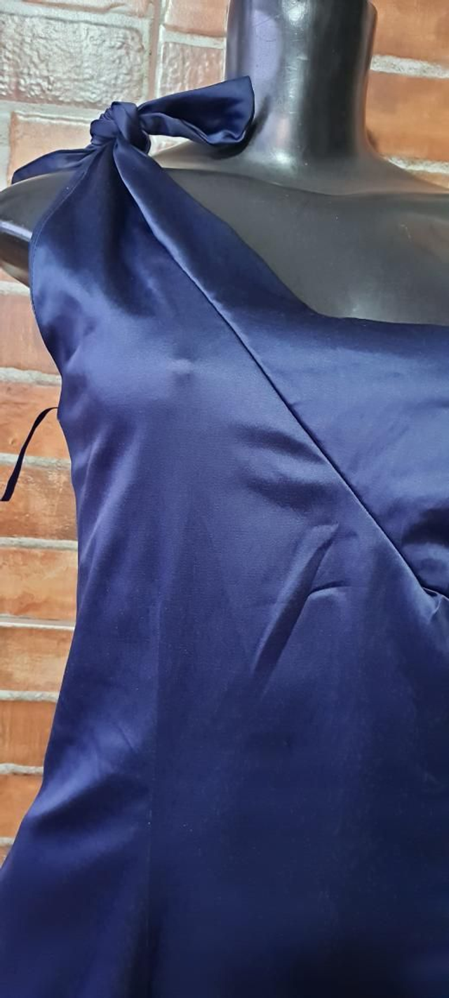 Vestido azul cetim fosco, mula manca. T/Gp. obs: usado super conservado