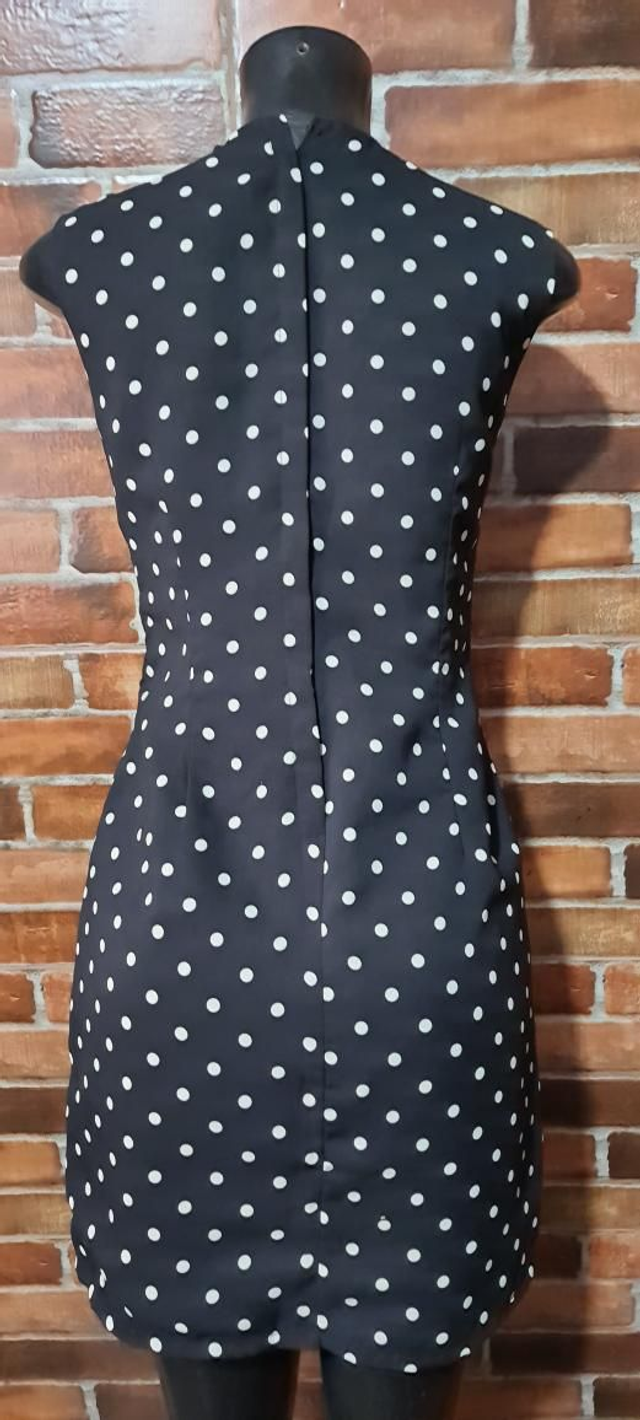 Vestido de bolinha, sem manga, forrado, T/P. OBS: usada super conservada