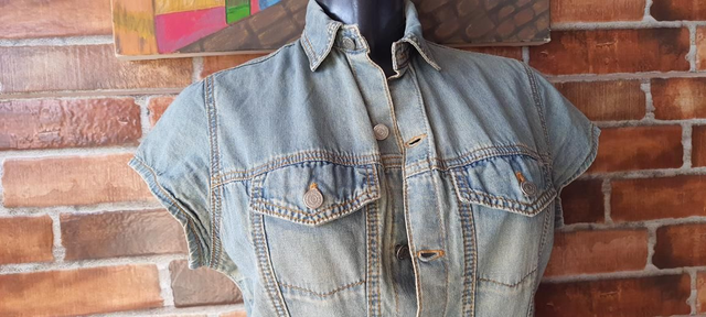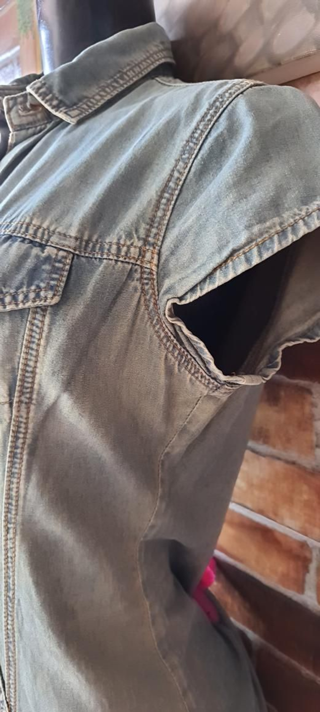 Vestido jeans claro T/44, manga curta. obs: usado super conservado