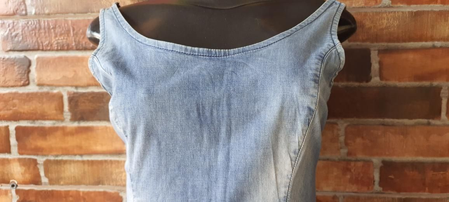 Vestido jeans T/M. sem manga, OBS: usado super conservado