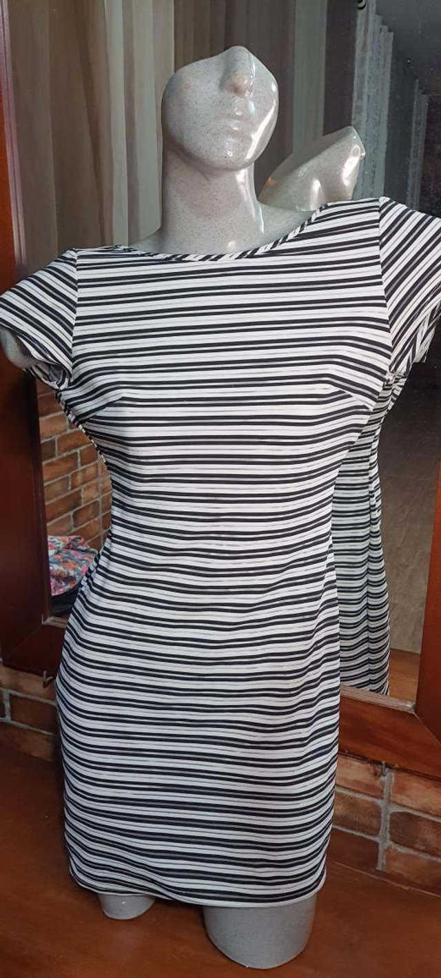 Vestido Listrado Decotado T/38. manga curta, OBS: usado super conservado