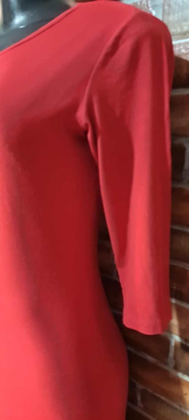 Vestido Vermelho, T/P, Mid, manga 3/4. OBS: usado super conservado